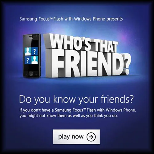 The new Windows Phone from Samsung keeps people up to speed on the lives of their friends and social networks better than any other phone on the market. In order to prove it, CP+B made a quiz to see how well visitors with other phones know their friends. Most were amazed at how little they knw about their friends and the amazing features of the new Windows Phone.