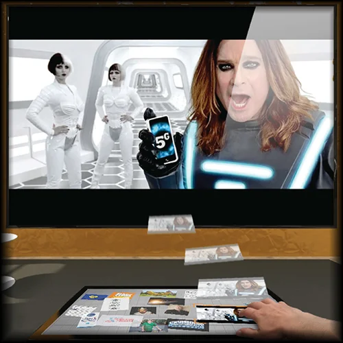 We created a multi-touch, multi-user showcase on a Microsoft Surface table that allowed for streaming and browsing of content. Then when something interesting came up, the user could “flick” the content up to a screen that covered most of the wall for the details about and/or playback of that project.